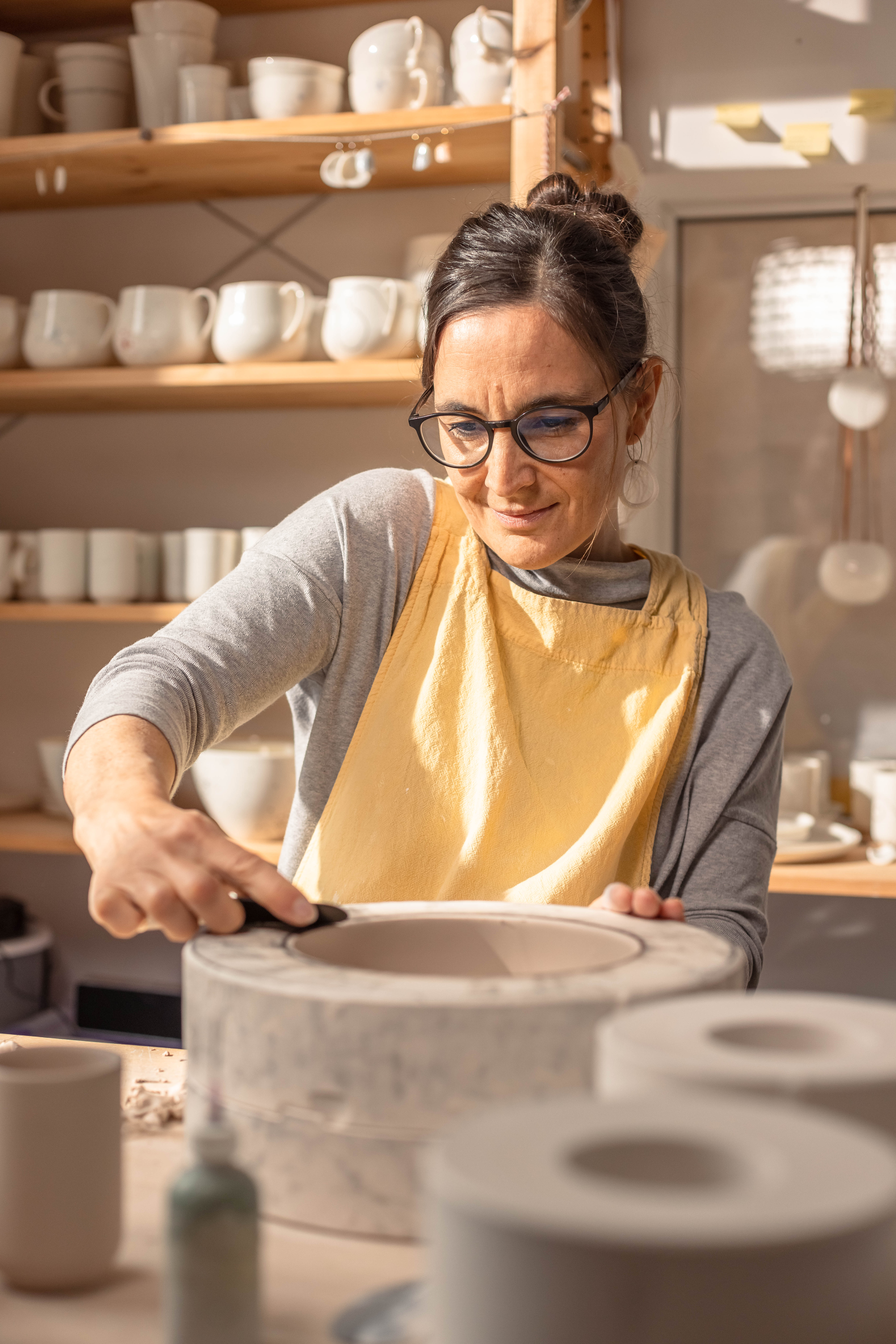 V prvem arhitekturnem biroju sem izrisovala predvsem individualne hiše, v drugem na koncu vodila projektiranje zahtevnega družbenega objekta. Kot samostojna arhitektka sem se največ ukvarjala s prenovami, na koncu s sebi ljubim interierjem. Všeč so mi projekti manjših meril, v katerih se procesi ne vlečejo (pre)dolgo. Z njimi se lahko tudi laže izrazim ... Do odločitve za ustvarjanje izdelkov iz porcelana pa me je pripeljala čisto osebna zgodba. Med tretjim porodniškim dopustom sem se odločila za obiskovanje tečaja oblikovanja iz gline. Ob nepričakovanem povpraševanju, ali bi pomagala svoji mentorici, s čimer bi se hkrati veliko naučila, in prihajajoči krizi v našem sektorju je bila odločitev lahka. Ob preselitvi (nazaj) na Gorenjsko pa sem kupila svojo peč. Hkrati sem potem ustvarjala svoje arhitekturne projekte in delala v delavnici. Predolgo, saj oboje zahteva celega človeka. Oblikovanje keramike je zdaj na prvem mestu.