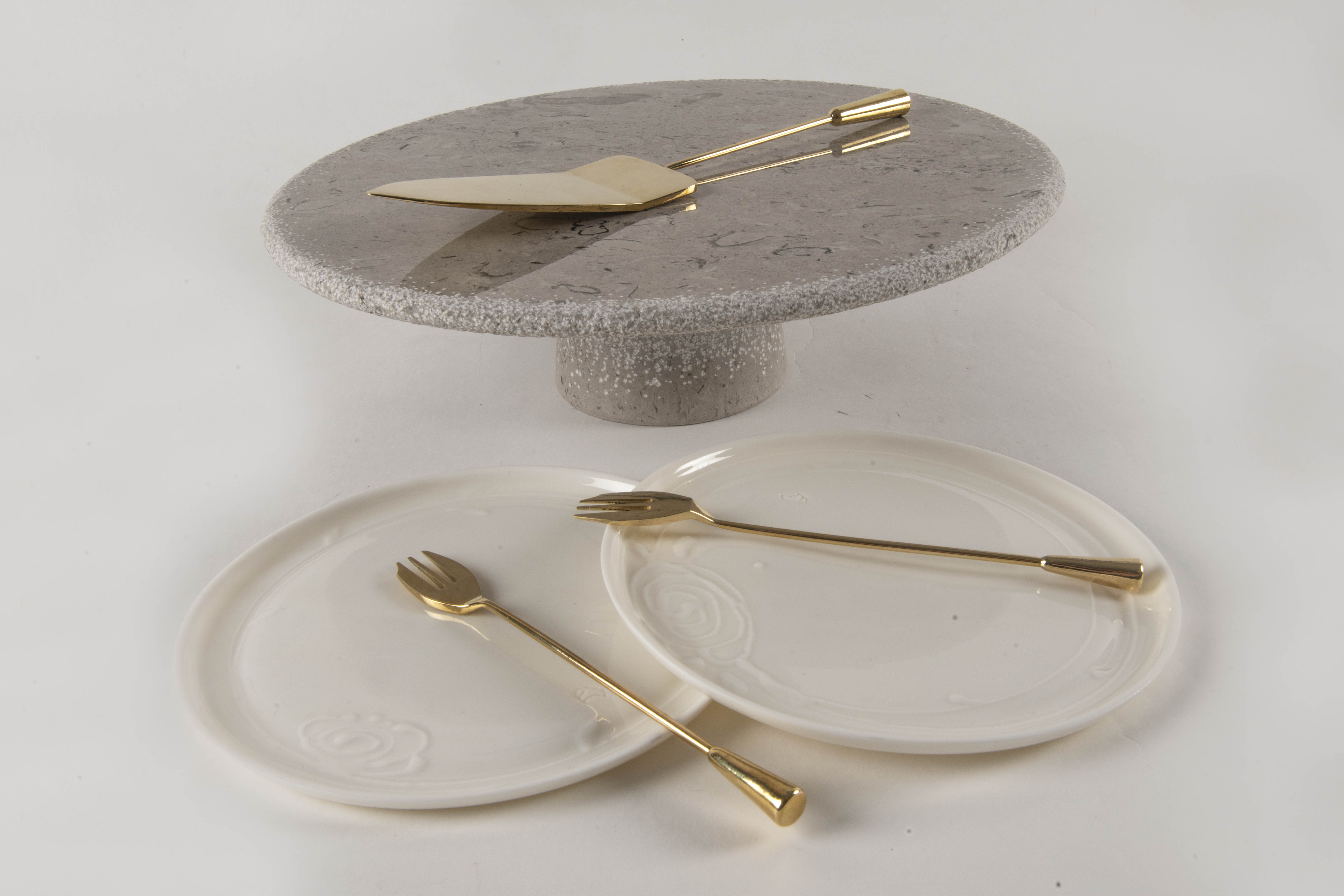 »Fabianijev« set Dunaj–Trst–Štanjel je darilni komplet za strežbo tort: stojalo iz kraškega kamna (Unikam), desertni krožniki iz porcelana (Urchic Porcelain) in servirna žlica z vilicami iz medenine (Stories of Silver). V obliki in izbranih materialih združuje ter izraža mnoštvo polj ustvarjanja in večplastno identiteto arhitekta Maksa Fabianija.