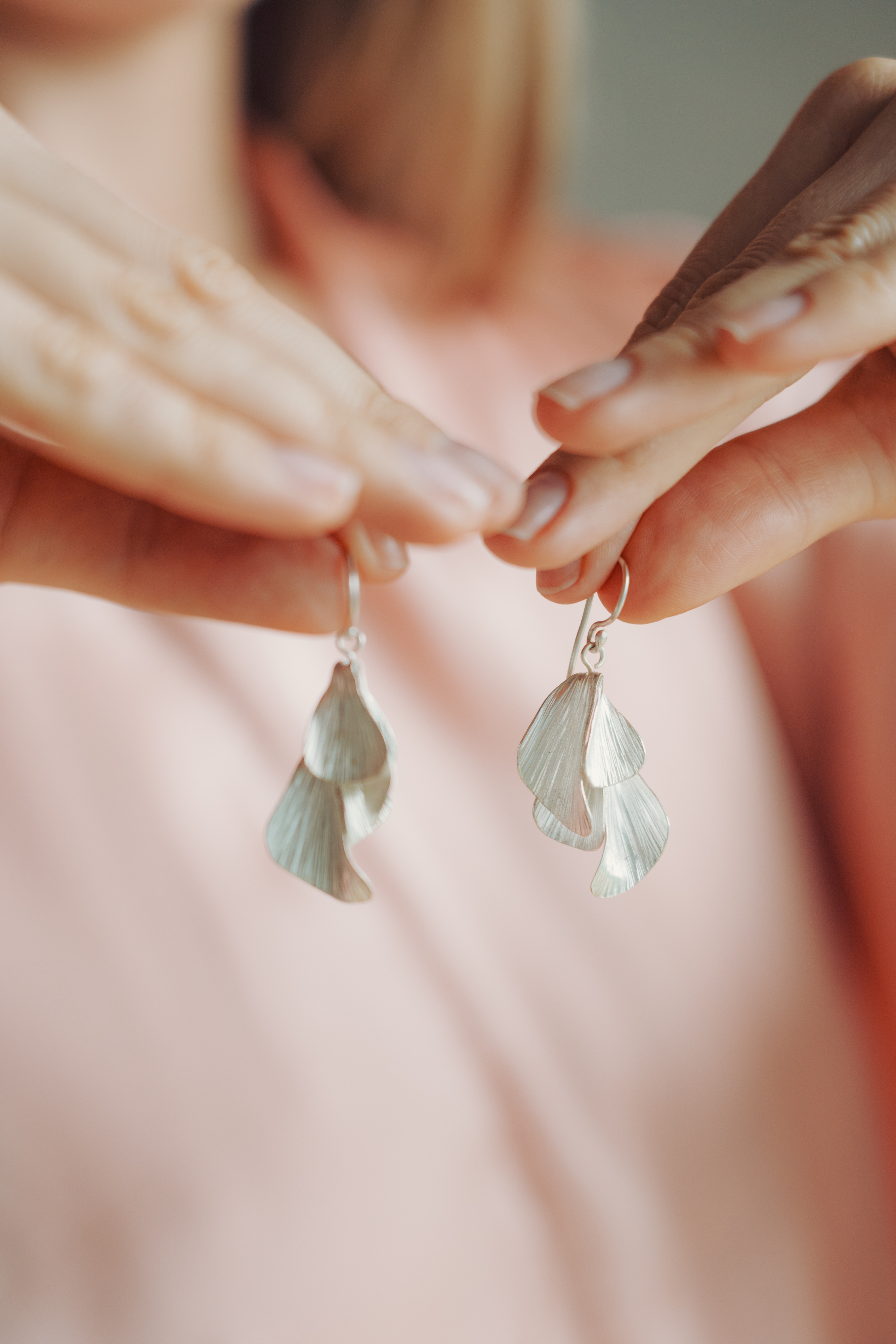 Srebrni uhani iz serije »Listki« s potolčeno površino
